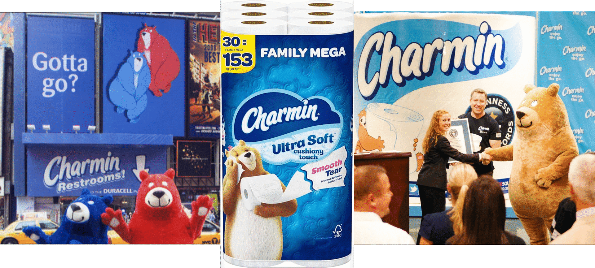 Charmin’s activations of the brand character are vast and varied. As well as appearing on packaging, Leonard (and his extended bear family of Molly, Bill, Amy and Dylan) adorns numerous advertising and PR campaigns. In 2010, Charmin celebrated their 1,500,000th visitor to branded restrooms in New York's Times Square, and Leonard accepted the Guinness World Record for the largest roll of toilet paper in 2011.