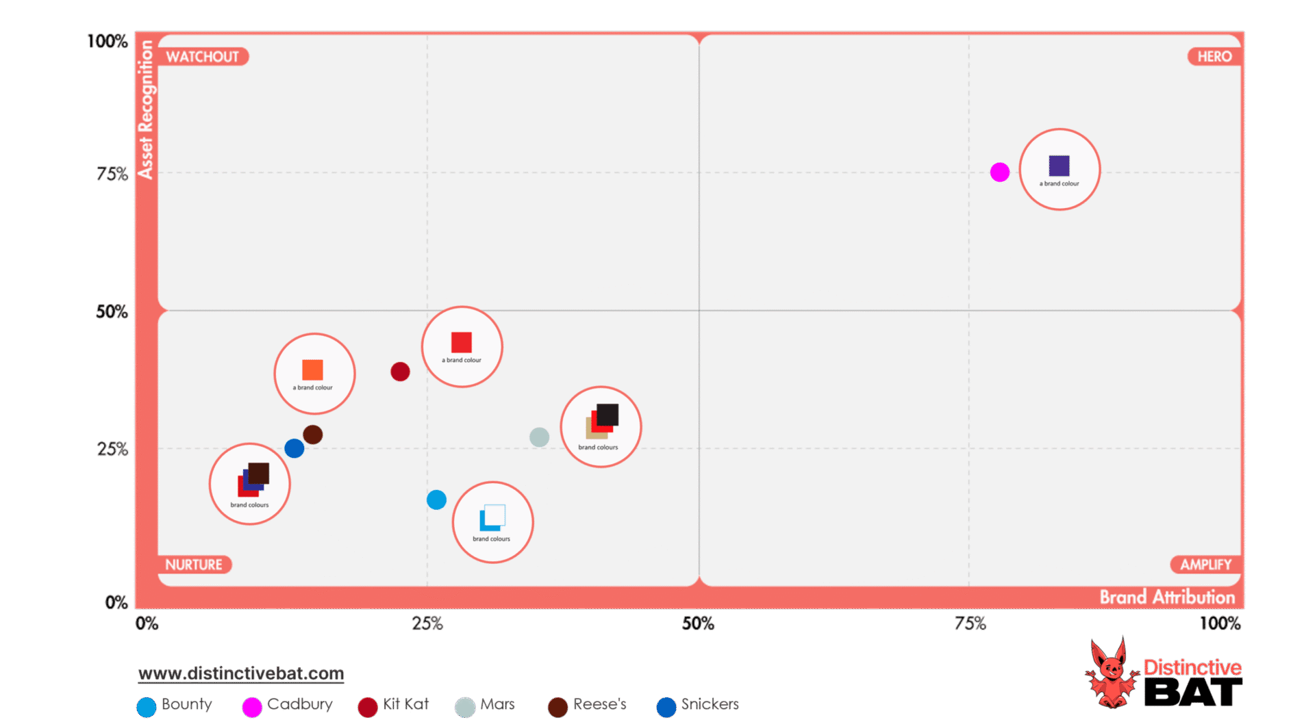 Cadbury excels in its use of colour, achieving the only colour Hero asset in the category for their use of dark purple. The brand is well known for their commitment and consistency to colour as a Distinctive Brand Asset (read more here) which undoubtedly contributes to their success.