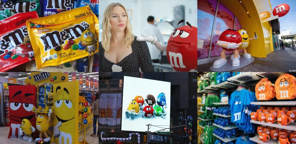 Another leading brand, M&M’s dominate for use of character. The intrinsically linked mascots (walking talking products named Red M & Yellow M – simple but genius!) signal the brand any time they are used.