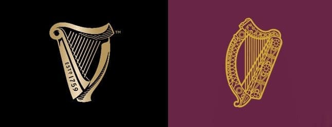 When it separated from the United Kingdom in 1922, the Irish Free State adopted the same ‘Brian Boru harp’ as its emblem. The Irish State however was forced to depict the harp facing in the opposite direction to avoid infringing on the Guinness trademark.